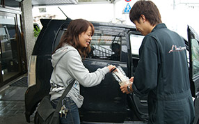 ご依頼のお車の引取の際、レンタカーをご用意してお伺いします。
